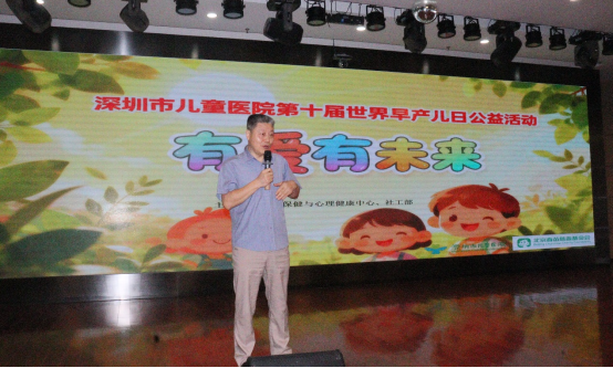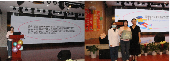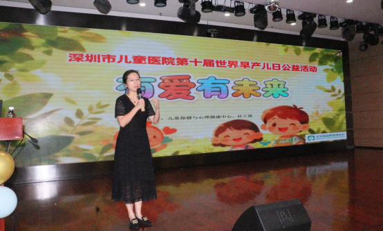 活动主持⼈⻩⽂献副主任医师深情回顾了本中⼼连续⼗年举办早产⼉⽇公益活动的初⼼与历程,并隆重介绍了本次活动的背景与意义。她表⽰,⼗年坚守,只为给早到的天使和他们的家庭带去最坚定的⽀持与最温暖的陪伴。