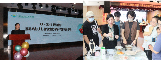 韩慧慧主管护师现场授课,以《0-24龄婴幼儿辅食添加》为主题,从⺟乳喂养、辅⻝添加时机、原则及喂养⾏为四⼤⽅⾯进⾏了细致讲解。强调辅⻝添加需“四⼤⼀稳”(年龄、体重、奶量、欲望够“⼤”,竖颈够“稳”),并遵循“由少到多,由稀到稠,由细到粗”的原则。同时,倡导“顺应喂养”,⿎励宝宝⾃主进⻝,让吃饭成为⼀件快乐的事。在辅⻝添加⼯作坊中,韩慧慧护师现场演⽰辅⻝由泥→末→碎→块的形态变化,指导家⻓亲⼿制作,并强调尽早添加含铁丰富的⾁类对早产宝宝的重要性。