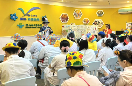 泌尿外科党支部立足临床工作充分发挥基层党组织的战斗堡垒作用,整合多方资源打造特色公益活动,为患儿和家长提供优质服务。自2022年起,每月最后一周的星期五是“奇妙星期五”活动日,支部引入“小丑医生”概念,开展“奇妙星期五”活动,为患儿表演魔术、派发礼物等,让患儿在轻松愉悦的氛围中缓解就医焦虑,感受关怀温暖。在过去的这四年里,共完成了48场“奇妙星期五”活动,2000余次医护奇幻“变身”,服务近4000名宝贝。