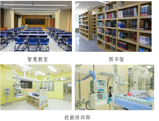 医院教学设施齐全,教学场地面积近4500㎡,有图书馆、学术报告厅、多媒体智慧教室等,具备远程教学直播平台。图书馆纸质和电子图书近802万册,能很好地满足临床教学的需要。技能培训部场地面积约2000㎡,配备多功能模拟人、生理驱动高端模拟人等教学模型,有内、外科基础技能室、模拟手术室、虚拟仿真高级技能训练室及12站标准化OSCE考站,是深圳市卫生健康委主导建设的医学模拟教育体系的重要组成部分。