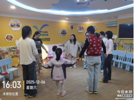 当袁媛老师宣布圣诞老人已藏好礼物时,孩子们的眼睛里闪烁出惊喜的光芒。“真的吗?在哪里?”他们立刻化身为小侦探,和家长一起在书架后、绘本角仔细搜寻。优优(化名)因为治疗身体还比较虚弱,平时活动不多,但在妈妈的鼓励下,她坚持走到绘本区,踮起脚尖在书架上层摸索,最终找到一个积木礼物。她紧紧抱住礼物,脸上绽放出灿烂的笑容:“妈妈,我找到了!”这份主动探索与获得的喜悦,让在场的人也为之动容。