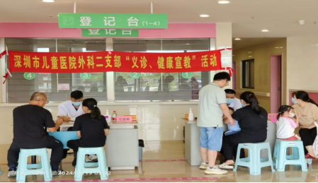 在陆丰妇幼保健院,外科第二党支部的医疗专家们设立了义诊点,为当地儿童提供免费的健康咨询和诊疗服务。现场前来就诊的患儿及家属络绎不绝,专家们用他们的专业知识和技能,为每一位前来就诊的患儿及家长耐心解答疑惑,赢得了广大家长的赞誉。此次义诊不仅传递了健康与关怀,更彰显了我院医务工作者的专业素养和奉献精神。