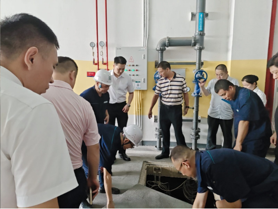 9月22日至23日,医院党委书记罗新乐、院长麻晓鹏、副院长李德发亲自带队,率领后勤管理科工作人员及福田、龙华两院区物业公司相关人员,对两院区开展全覆盖、无死角的防台风防汛安全专项排查。此次排查聚焦关键风险点,重点检查了医院外围防护设施、建筑天面排水系统、应急物资库储备情况,以及施工现场、员工宿舍楼、食堂等人员活动区域;同时,对保障医院运转的高低压配电房、发电机房、液氧站,还有负责安全监控的消防监控中心和易积水的地下停车场等核心区域,逐一核查设备正常运行状态与防御准备,坚决把隐患消除在台风来临之前。