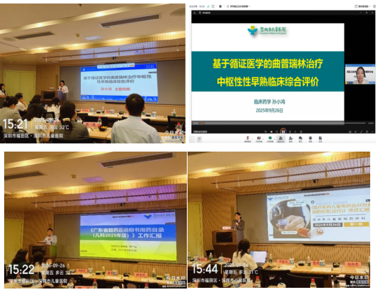 接着,进入专题汇报环节,专题汇报环节由深圳市儿童医院李学娟主任主持。本次研讨会聚焦三大核心专题:性早熟用药曲普瑞林临床综合评价、儿童超说明书用药目录、儿童药品分剂量调配规范,精准回应了临床最迫切的需求。
