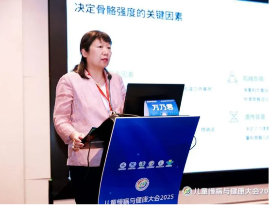 北京积水潭医院万乃君教授指出,儿童肥胖率持续攀升对骨骼健康构成严峻挑战。她强调,儿童期是骨骼发育的“黄金储蓄期”,肥胖对骨骼具有“双重影响”:一方面体重负荷促进骨量增加,另一方面慢性炎症与代谢紊乱却侵蚀骨骼质量,导致骨龄超前、关节负荷加重及骨折风险上升。她呼吁临床应超越“骨密度正常”的表象,重视骨骼结构与功能的全面评估,为早期干预提供依据。