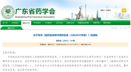 图2.《超药品说明书用药目录(儿科2025年版)》在广东省药学会官网上正式发布