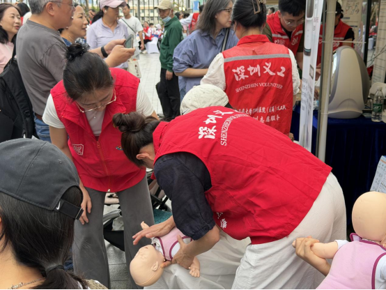 2.互动式技能培训:针对儿童心肺复苏(CPR)、海姆立克急救法及AED的使用等关键急救技能,组织进行了模拟演示和互动教学。利用模拟人道具,党员志愿者分步骤、慢动作演示操作要点,并邀请在场市民亲手实践,给予一对一指导,纠正错误手法,帮助大家初步掌握在紧急情况下能为孩子争取宝贵时间的急救技能。