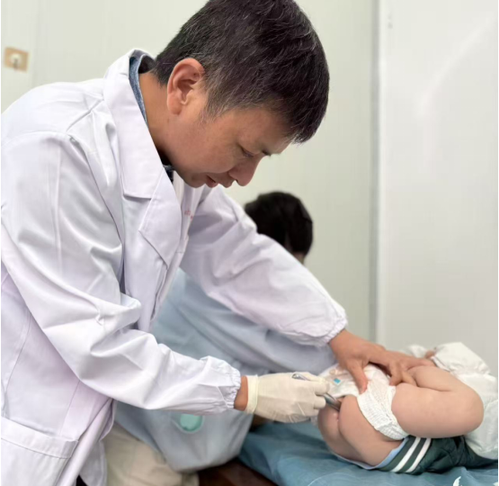 此次活动尤其聚焦先天性肛门闭锁、先天性巨结肠术后患儿的康复需求。这两类疾病作为儿童消化道常见畸形,术后需长期规范复查与康复指导,而基层家庭往往面临异地复诊路途遥远、就医不便的难题。针对这一核心诉求,团队为多例术后患儿进行了全面的术后评估,通过肛门指检、扩肛等专业检查,精准掌握患儿肛门功能、伤口愈合及排便情况,并围绕扩肛训练、排便反射培养、饮食调整、并发症预防等关键康复要点,向家长开展一对一实操指导,手把手演示正确护理手法,童丹护士长详细向术后患儿家长介绍术后护理事宜,帮助家长掌握科学护理技能,让患儿在家门口就能获得三甲医院规范专业的术后康复服务。