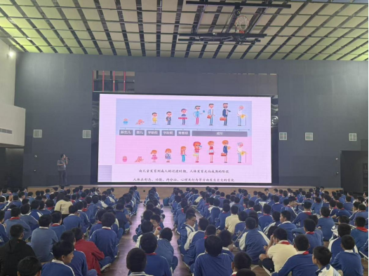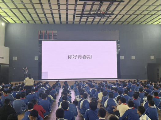 男生的青春期讲座在学校的体育场里进行。许医生分别从青春期的简介,青春期面临的生理心理改变和困惑,青春期的卫生保健,男童的自我保护以及拒绝成为校园霸凌者几个角度进行讲授。谈到性发育这个议题,本来安静的体育场瞬间变成一锅粥,同学们对于这个敏感的话题以窃窃私语、哄闹来表达自己的害羞,许医生引导同学们正视这个问题,了解这是个正常的生理过程。随后许医生讲授了青春期将会经历的身高增长加速、肥胖风险增高、痤疮、变声的烦恼,并鼓励孩子这个时期坚持运动、均衡营养,注意面部清洁,合理用声等小技巧。同时也简单的介绍了女生的青春期变化,呼吁孩子们不要去议论女孩子的变化,学会尊重。接下来许医生讲授男孩子的自我保护,以问促学,在许医生的提问中,同学们能回答、掌握隐私部位不能碰,避免独处以规避受侵犯的风险,并通过案例来深化这些内容。最后,许医生呼吁孩子们,拒绝校园霸凌,不要让自己对别人的“起外号”、“孤立”等行为对其他同伴造成伤害。