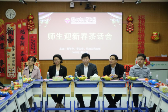 为全面贯彻党的教育方针,落实立德树人根本任务,深化教学交流、厚植师生情谊,2026年2月10日下午,我院举办第七届迎新春师生茶话会。党委书记罗新乐、副院长李德发出席,教学办、技能培训部、医务科、信息科、科教科、后勤管理科负责人,各专业基地教学主任及研究生、住培医师代表参加座谈。会议由教学办主任李小敏主持。
