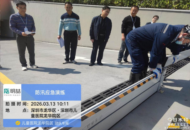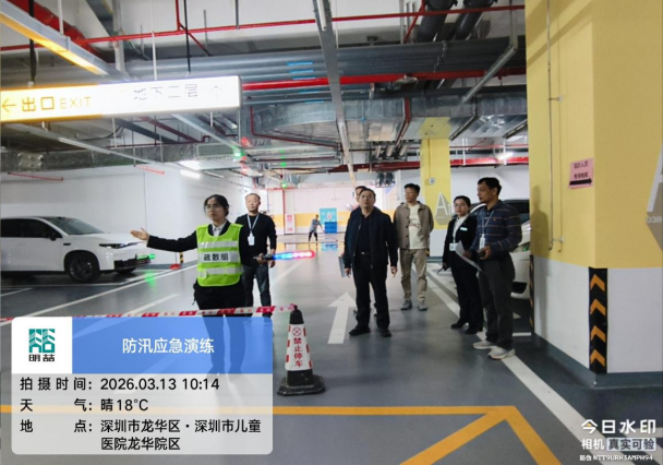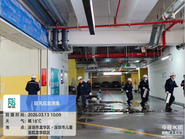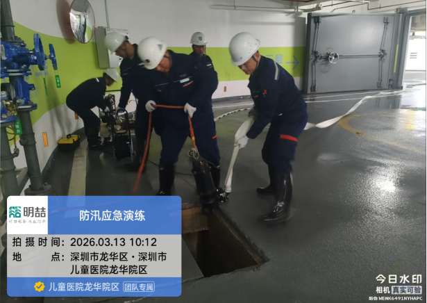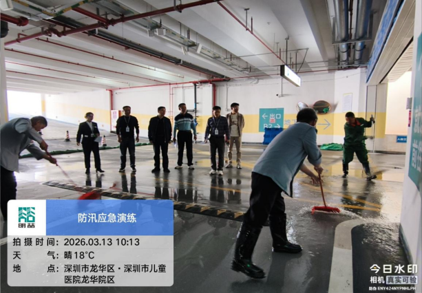 为切实做好医院防汛应急处置工作,筑牢汛期安全防线,全面提升突发汛情应急处置与协同作战能力,保障就医群众及医院员工生命财产安全,2026年3月13日上午,深圳市儿童医院(龙华院区)精心组织开展了模拟地下车库积水防汛应急处置演练。