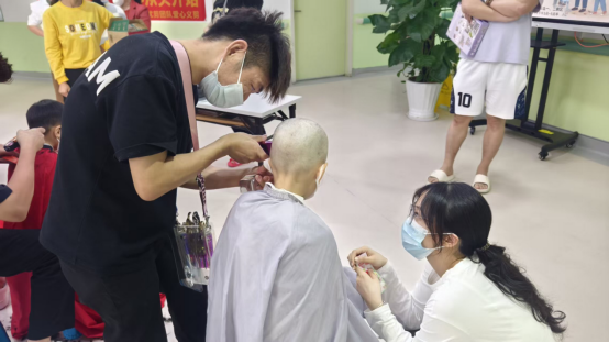 活动现场,义剪小队成员温柔耐心,为每一位患儿轻轻梳理头发、小心剃去长发,以轻柔操作缓解孩子对治疗的紧张感。看着青丝落下,孩子们脸上露出了轻松的笑容,纷纷化身勇敢的“小光头勇士”。同时,考虑到长期陪护的家长们为照顾孩子无暇顾及个人形象,志愿者们也为他们免费修剪头发,抚平陪护生活的疲惫。剪刀与梳子的碰撞间,不仅修剪出清爽利落的发型,更剪出了医患之间的温情与信任。