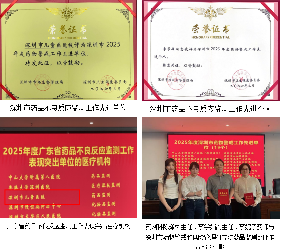 这份荣誉的取得,得益于省市主管部门的悉心指导,源于院领导班子“以患者为中心”的管理理念,更是全院医务人员共同努力的成果。站在新的起点上,深圳市儿童医院将继续深化药物警戒智能平台建设,完善药品安全预警机制,加强儿科用药安全研究,构建“医院-家庭-社会”三位一体的用药安全网络。