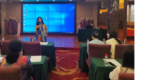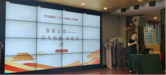 图为陈永红老师为同志们讲授党的二十大主题艺术党课:客家山歌--历久弥新 传唱美好