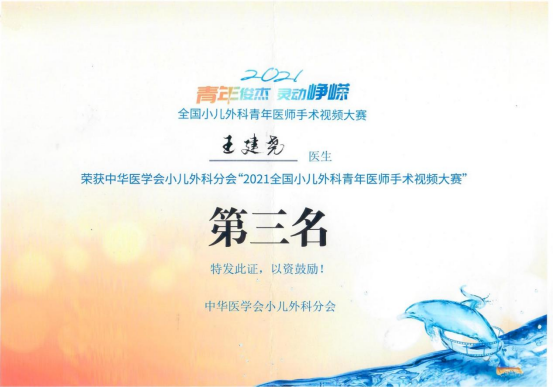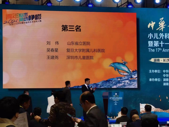 2021蓝灵杯全国小儿外科青年医师手术视频大赛终于在湖南长沙落下帷幕,我院普外二科王建尧副主任医师凭借着高超的手术技巧,精美的手术视频制作,优秀的临床病例演讲展示,经过初赛、半决赛到决赛,一路过关斩将,脱颖而出,最终拿下全国第三名的好成绩。这也是这届比赛中广东地区唯一入选前三甲的选手,体现了我院小儿外科综合实力的水平。