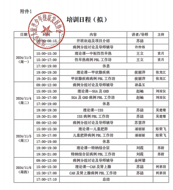 本次学习班为中级培训班,以提升临床医生的实际诊疗水平为目的,通过理论教学结合临床经验分享,围绕特发性矮身材、特纳综合症、肾上腺皮质增生症、性早熟、宫内发育不良生后持续矮小等内容开展集中授课、案例分析及讲师带教指导。